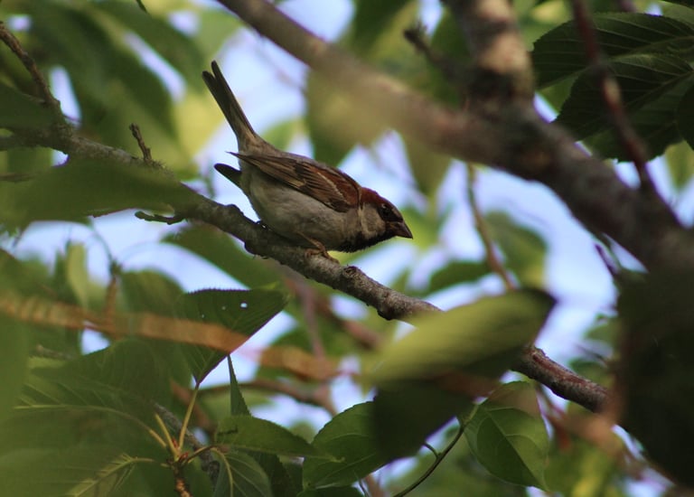 A bird captured though leaves on a warm day on Cape Cod.